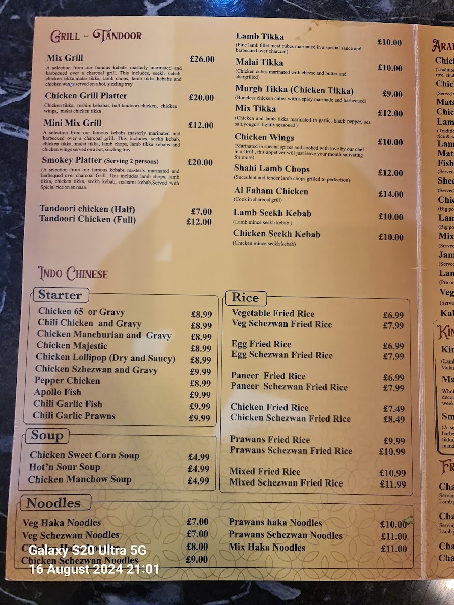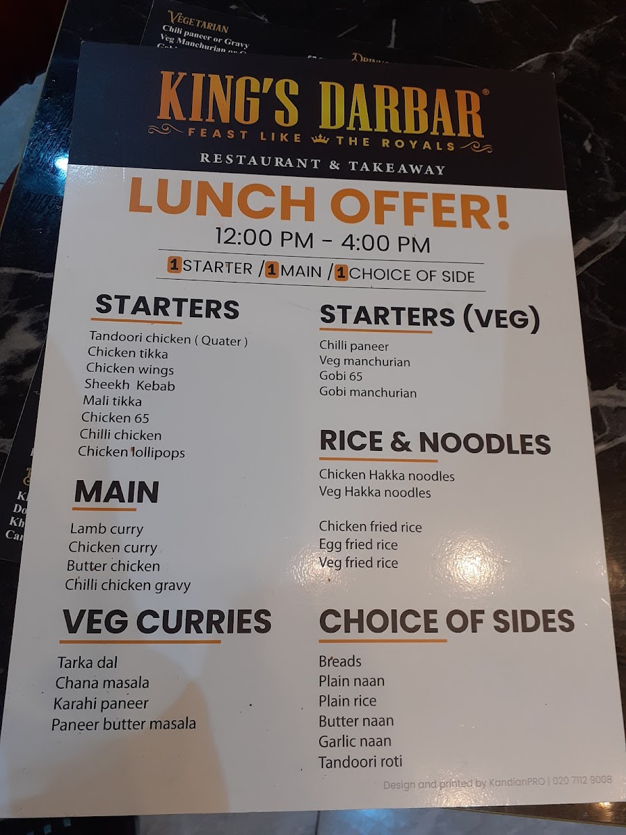 King’s Darbar Menu
